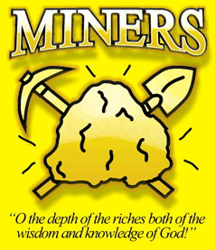Miners is a Bible club for children ages 6 through 13. A program of Bible study, gym games, food, and fun for boys & girls, "Miners" refers to those who dig in the Word of God to find God's riches in Christ, which are eternal and more to be desired than man's riches.